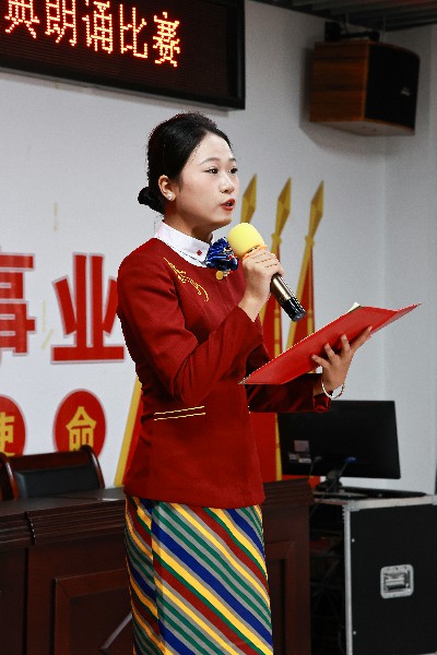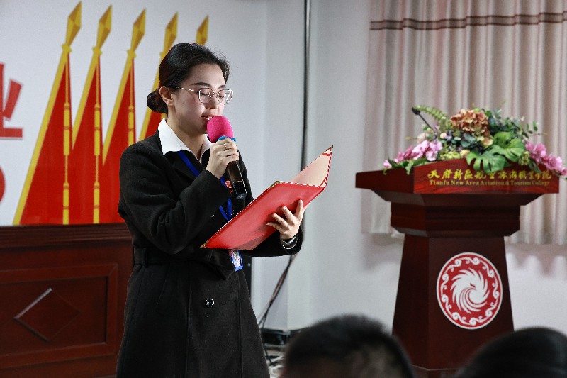 天府新區(qū)航空旅游職業(yè)學(xué)院黨委委員、交通運(yùn)輸學(xué)院航空技術(shù)學(xué)院黨總支書記石慧發(fā)表了熱情洋溢的開場(chǎng)致辭。紅色精神是中華民族的精神瑰寶,承載著革命先輩的英勇事跡和崇高精神。舉辦此次朗誦比賽,不僅是對(duì)歷史的深情回望,更是對(duì)未來的堅(jiān)定期許。希望同學(xué)們能從紅色精神譜系中汲取奮進(jìn)力量,將愛國(guó)之情轉(zhuǎn)化為實(shí)際行動(dòng),在實(shí)現(xiàn)個(gè)人價(jià)值的同時(shí),為國(guó)家的繁榮富強(qiáng)貢獻(xiàn)自己的智慧和力量。