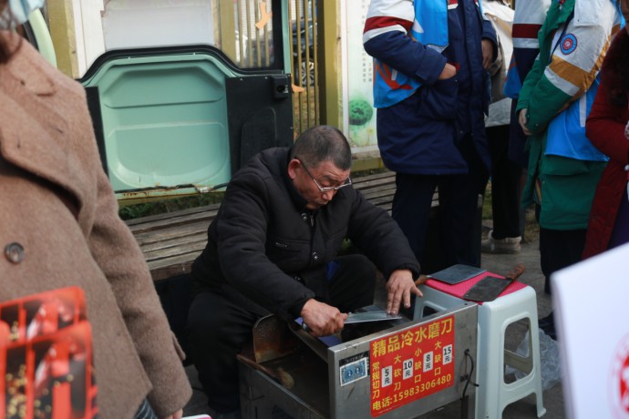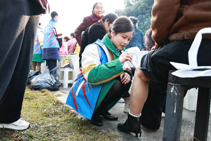 在機動志愿服務點位上,志愿者們更是展現(xiàn)出高度的靈活性與專業(yè)性。艾灸志愿服務點位前,志愿者們協(xié)助專業(yè)艾灸師準備器具、調配艾絨,同時向圍觀群眾耐心講解艾灸的原理、功效及適用人群;他們一邊引導群眾有序體驗,一邊普及中醫(yī)養(yǎng)生知識,讓群眾在感受溫暖的同時,也領略到傳統(tǒng)中醫(yī)文化的博大精深,現(xiàn)場彌漫著艾草清香與溫馨氛圍 ;在小家電維修點位上,具備專業(yè)知識的志愿者們認真檢查每一件送來的小家電,憑借精湛技藝和負責態(tài)度,為居民解決實際問題,贏得陣陣稱贊;在縫補點位上,志愿者們飛針走線,為有需求的群眾修補衣物,一針一線都飽含溫暖與關懷,讓群眾感受到貼心服務;在磨刀點位前,志愿者們虛心向老師傅學習技巧,細致為居民磨刀,讓鈍刀重煥鋒利,現(xiàn)場不時傳來居民的感謝聲。